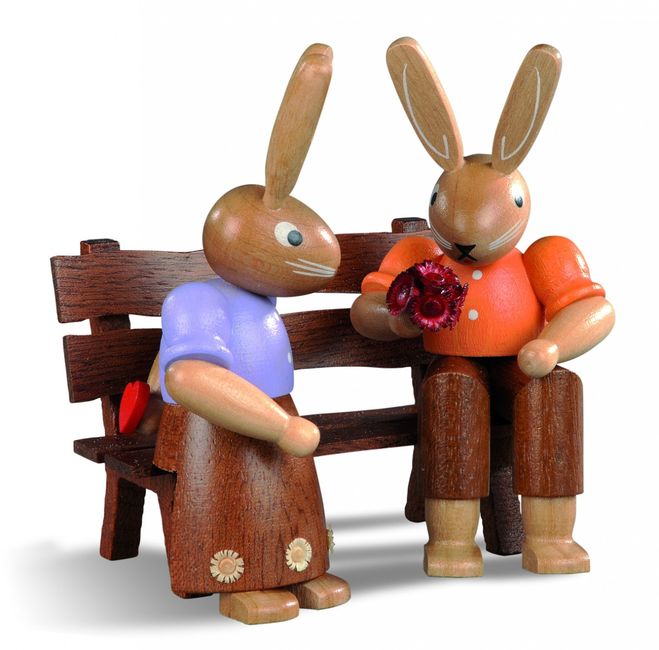 | Bezeichnung: | Osterhase Hasenpaar auf Bank farbig lasiert klein |