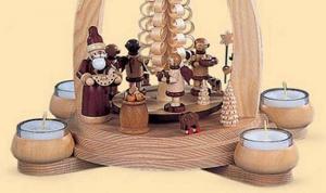 Pyramiden der Firma Kleinkunst aus dem Erzgebirge Müller GmbH Seiffen gehören in ihren verschiedenen Größen, Formen und Motiven zu den beliebtesten Kostbarkeiten aus dem Erzgebirge. Durch die reizvolle Kombination einheimischer und exotischer Hölzer erhalten diese kunstvollen Stücke ihre besondere Ausstrahlung. Der zur Krone gefügte Ringkörper als oberer Abschluß der Stockwerke ist das typische Merkmal der Müllerschen Pyramiden, welche bis zu einer Höhe von 1.50m in meisterhafter Perfektion hergestellt werden. Teilweise verziert von geschmacksmustergeschützten Gestaltungselementen wie z.B. die stilvollen Stockwerkzäunen, sind die Kunstwerke aus Meisterhand weltweit beliebt und begehrt. Hier erwerben Sie eine Besonderheit mit Anspruch und bleibendem Wert.