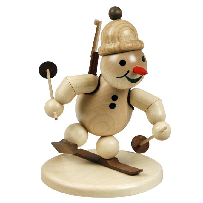 Seit 1996 werden in der Drechslerei Wagner die kleinen, lustigen Schneemänner aus Ahornholz gedrechselt. Mit viel Liebe zum Detail und in meisterhafter Handarbeit werden einzelne Figuren in verschiedendsten Motiven aber auch Lichterbögen und Pyramiden gefertigt. Das Spiel " Biathlon im Schneemannland" ist nach Entfernen der Folie vom Umtausch ausgeschlossen!