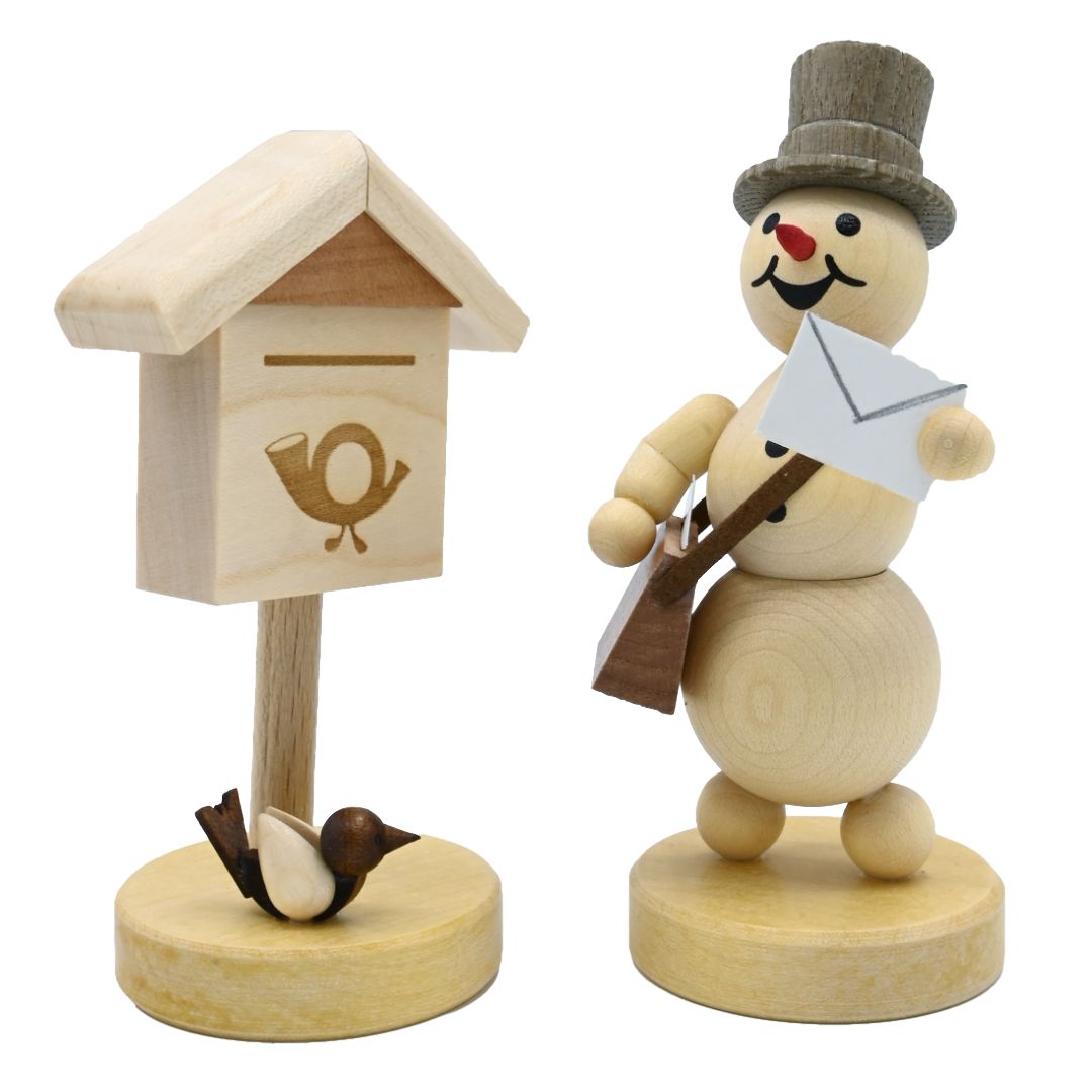 Höhe Schneemann 12 cm natur, mit Sockel Briefkasten Höhe ca. 9 cm